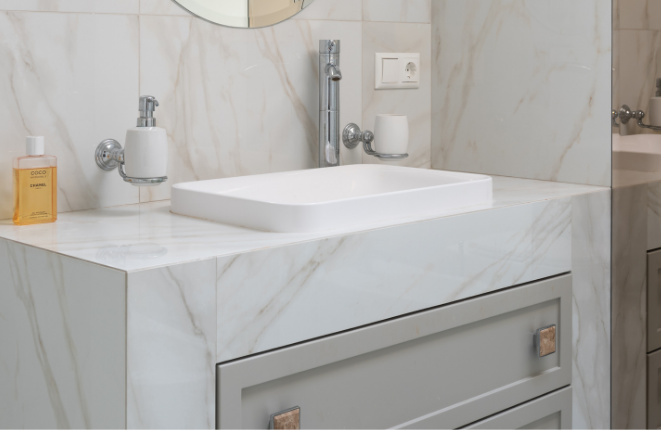 Natural stones like granite and marble are some of the popular high-end and lasting materials you can use. They are elegant and luxurious, which is why they tend to attract more buyers and higher prices during the resale of the property. The only possible downside is that they need regular sealing. Other materials you can consider are quartz and tiles.