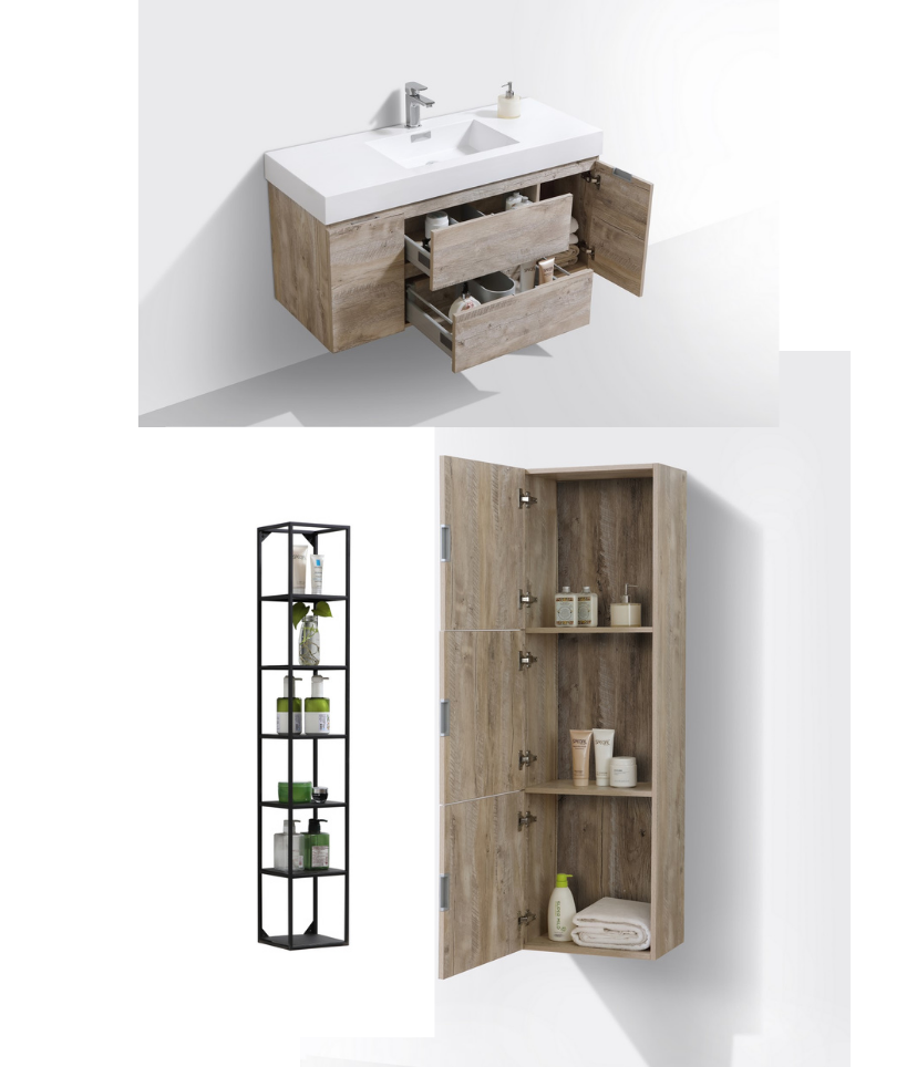 The design and material used to make the vanity and cabinets are also crucial, as they ensure you get proper placement and durability. High moisture content in the bathroom should not interfere with the material or cause it to wear off quickly. Some designs like floating vanities and wall cabinets are better for a smaller bathroom because they save space.