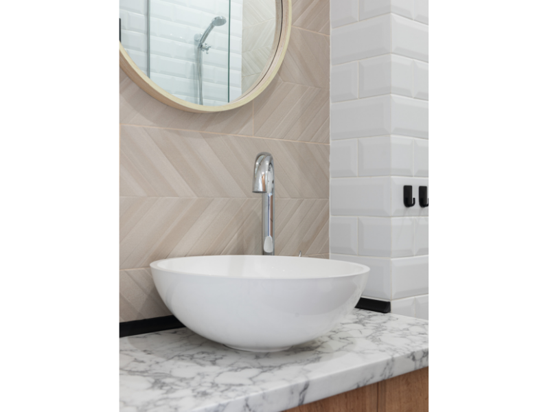 One of the best ways of accessorizing bathrooms and adding a personal touch to neutral spaces is by adding backsplashes. These materials can be used to create a wide range of designs, including metallic mosaic, recycled glass, and irregular ceramics. You can work with your interior designer and contractor to develop artistic patterns that can be soft or bold depending on the colours you go for.